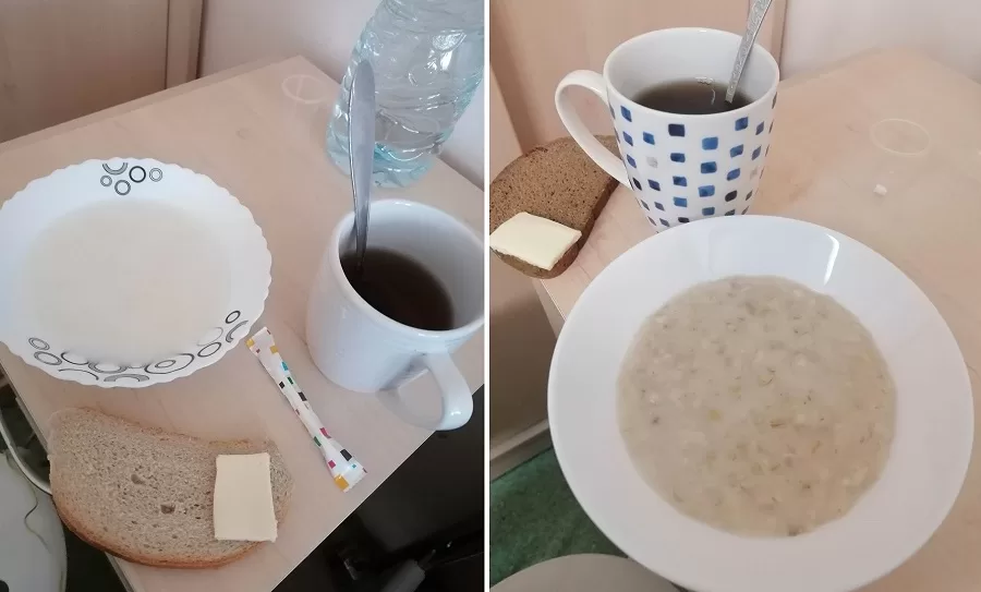 Ačiū skaitytojai už nuotraukas ir komentarą: “Labas vakaras! Siunčiu Utenos ligoninės meniu (2023-vasaris). Tai, kas vadinama maistu, bandau perteikti nuotraukomis, bet neįmanoma perteikti maisto pateikimo. Maistas atnešamas į palatą, viskas jau supilta ar sudėta į lėkštes. Bet geriausia viso to pateikimo akimirka yra ta, kai i palatą įskridusi tetulė ant spintelių numeta po riekę duonos ar batono. Kitą dieną visas duonas numetė ant palatoje esančio šaldytuvo. Palatoje guli karščiuojantys, kosintys ir pan. ligoniai, o paviršiai per dvi dienas nebuvo valyti. Na, pliusą galima dėti bent jau už tai, kad maistą dalina su guminėmis pirštinėmis.“