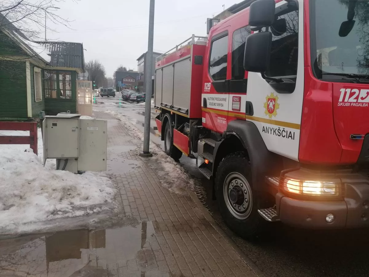Apie 14 valandą Anykščių centre, Šaltupio gatvės pradžioje, stovėjo ugniagesių automobilis.