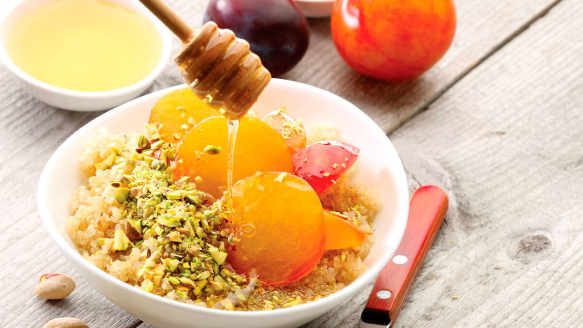 Siūlome pasigaminti rečiau valgomą bolivinių balandų košę su slyvomis ir pistacijomis.