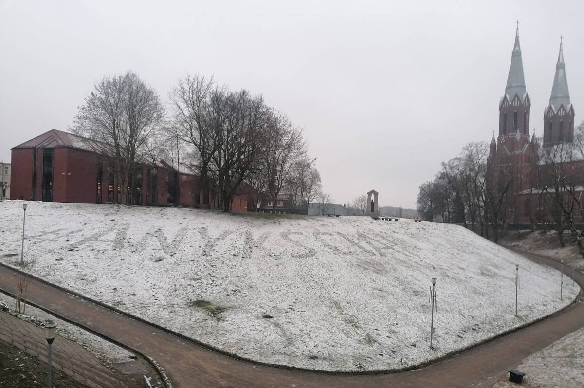Tačiau žodis „Anykščiai“ pasirodė ne taip lengvai įveikiamas. Štai pasnigus buvęs užrašas vėl gadina aukštos estetinės kultūros valdininkams nuotaiką, nes kuo puikiausiai matomas ir perskaitomas.