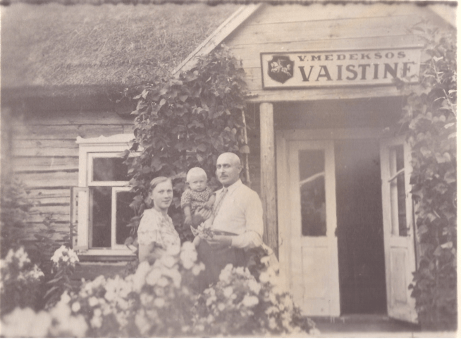 Debeikiuose prie vaistinės Vladas Medekša su žmona Vanda ir sūnumi Romu.