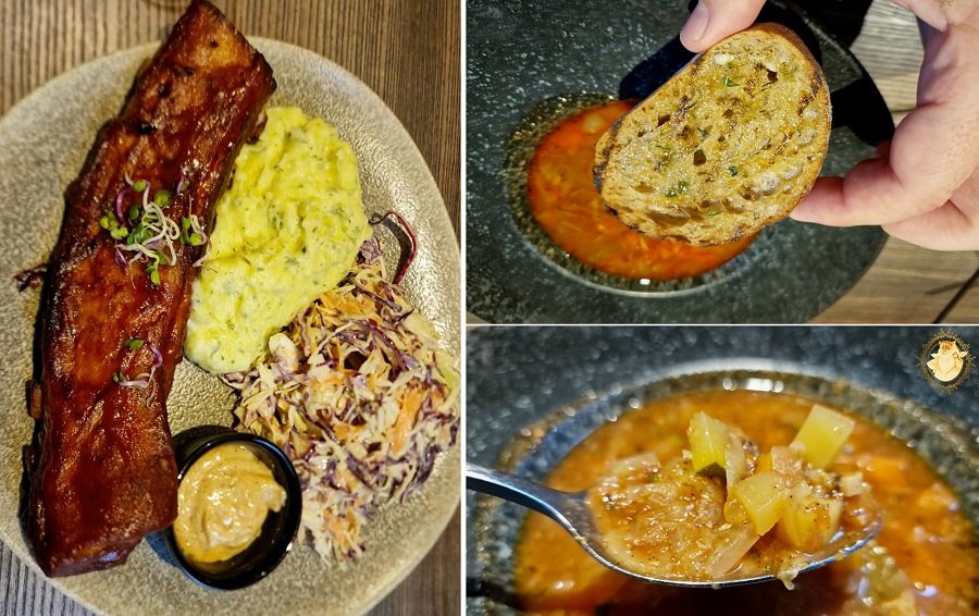 Atnešti pagrindiniai patiekalai – būtent tarp jų esantys BBQ šonkauliai – skleidžiamu kvapu leido mums suprasti, kad anglys visgi dar nespėjo įkaisti. O ir virtuvės kolektyvas greičiausiai nesitikėjo, kad per masinį dienos pietų patiekalų užsakinėjimą kažkas išdrįs įnešti sumaišties užsakydami patiekalus iš pagrindinio meniu.