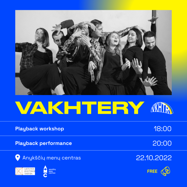 Spalio 22 dieną Anykščių koplyčioje (Vilniaus g. 36) vyks Playback teatro „VAKHTERY“ (Ukraina) pasirodymas ir kūrybinės dirbtuvės.