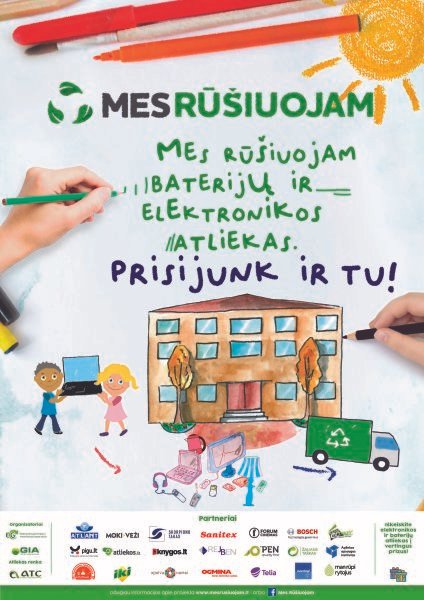 Nacionalinis aplinkosaugos projektas „Mes rūšiuojam“ jau vienuoliktus metus kviečia visus Lietuvos gyventojus prisidėti prie aplinkos saugojimo ir taršos mažinimo. Gaminių atliekas rūšiuoti, rinkti atskirai ir perduoti teisėtiems atliekų tvarkytojams kviečia Gamintojų ir importuotojų asociacija, Elektronikos gamintojų ir importuotojų organizacija kartu su savivaldybėmis, regioniniais atliekų tvarkymo centrais ir kitais partneriais.