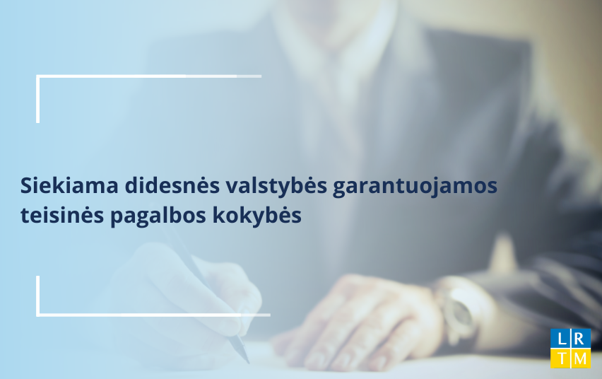 Seimas po pateikimo pritarė Valstybės garantuojamos teisinės pagalbos įstatymo pakeitimams, kuriais siekiama gerinti teisinės pagalbos paslaugos kokybę ir didinti visos sistemos efektyvumą. Siūloma, kad Valstybės garantuojamos teisinės pagalbos tarnyba, Lietuvos advokatūra ir Valstybės garantuojamos teisinės pagalbos koordinavimo taryba turėtų daugiau atsakomybės už valstybės garantuojamos paslaugos kokybę ir įrankių ją užtikrinti.