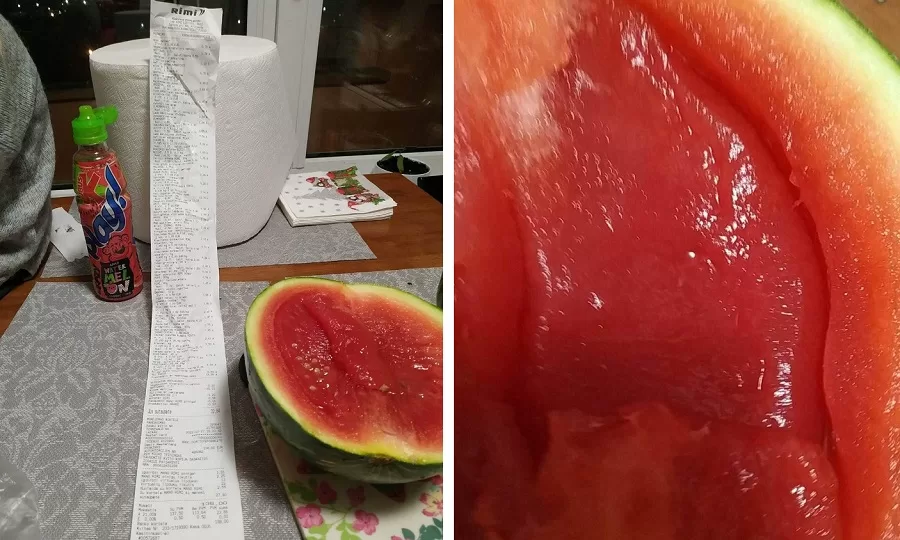 Ačiū skaitytojai už nuotrauką ir komentarą: “Sveiki. Antrą kartą perku arbūzą ir antrą kartą supuvęs, kaip želė. Pirkta Rimi. Nervai ima! Tarp kitko. Perkant paspaudžiau vieną kitą tai kiek minkštokas dangalas buvo, tai įtariu jie visi tokie, tai kad žmonės neapsigautų pirkdami Rimi Klaipėdos arenoje. Rimi išsiunčiau foto ir kvitą. Pirmą kartą nieko nedariau, bet dabar jau supykau. Iš Rimi jokio atsakymo. Pirkau šiandien nesenai”