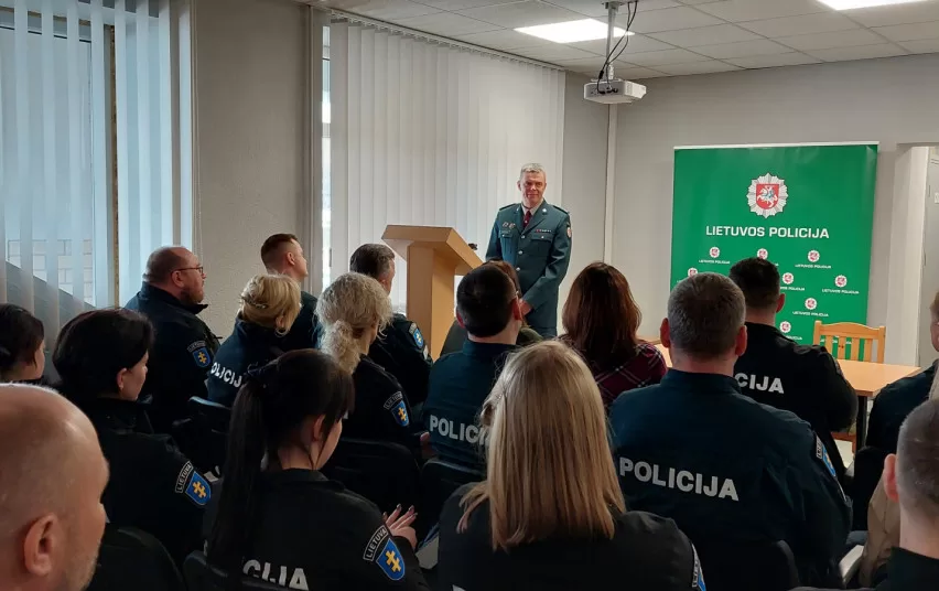 A. Jurgelevičius apskrities kolektyvo vardu dėkojo kolegai už jo indėlį šalies ir Alytaus apskrities policijai, už kartu išdirbtus metus. Linkėjo V. Kondrackiui prasmingų veiklų atradimo naujame gyvenimo etape, turiningo poilsio.
