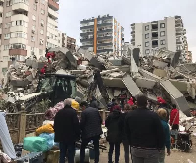 7,8 balo žemės drebėjimas ir jo galingi požeminiai smūgiai padarė didelę ir plačią žalą Turkijoje ir Sirijoje, įskaitant Adaną, Adiyamaną, Diyarbakirą, Gaziantepą, Hatajų, Kahramanmarą, Kilį, Malatiją, Osmaniją ir Sanliurfą. Baltieji šalmai sakė keturi jos savanoriai buvo tarp žuvusiųjų.