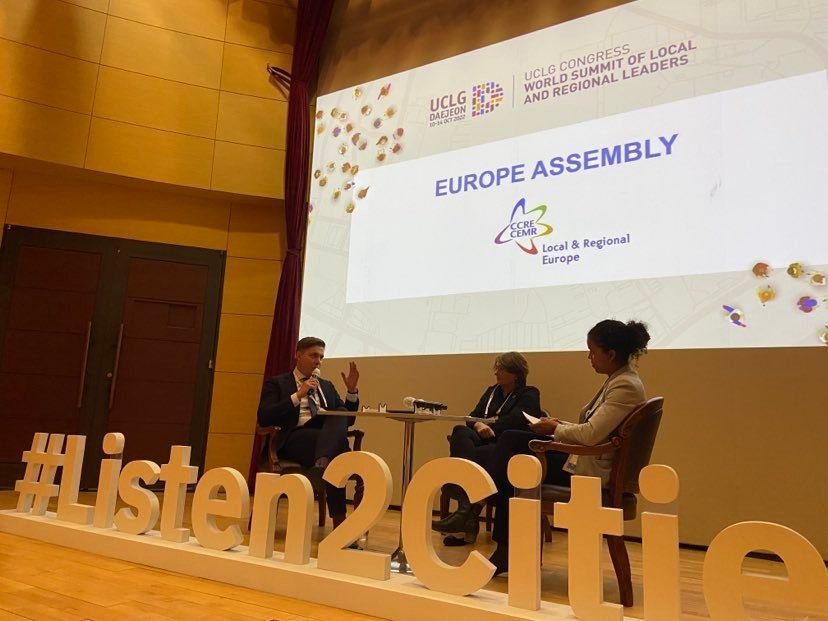 LSA prezidentas Mindaugas Sinkevičius kongrese surengtoje diskusijoje „Vietos ir regionų Europa sprendžiant pasaulines krizes“ kalbėjo apie savivaldybių vaidmenį įgyvendinant klimato kaitos priemones, bendradarbiavimo su bendruomenėmis bei nacionaline valdžia svarbą.