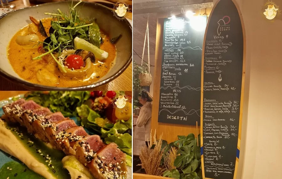 Restorano interjero detalės priminė, kad sėdime pajūryje: net gėrimų meniu surašytas ant lentos, kuri buvo banglentės formos.