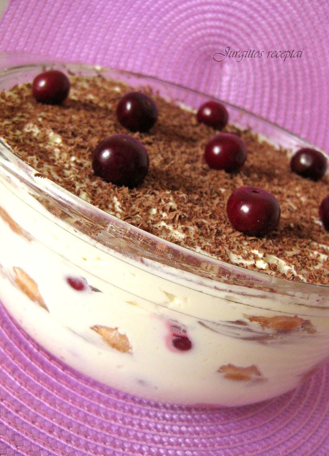 P.S. Tikras itališkas tiramisu daromas su kiaušiniais. Esu darius ir tokį, bet be kiaušinių man patiko labiau, o ir vyšnios čia labai tinka – suteikia labai gaivų skonį! Manau, butų skanu vyšnias pamirkyti alkoholyje.